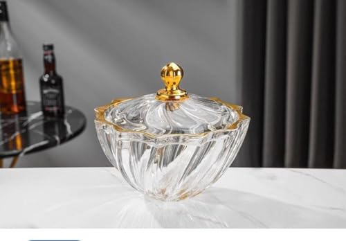 Generic - جيني وعاء حلوى كريستال مزخرف مع زخرفة وغطاء ذهبي، بونبونير زجاجي لتزيين الطاولة .hd
