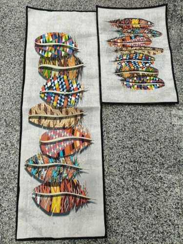 Generic - جيني طقم كتان مطبخ مزخرف بنمط ريش، متعدد الالوان، طقم من قطعتين، 140 × 55 سم و55 × 70 سم