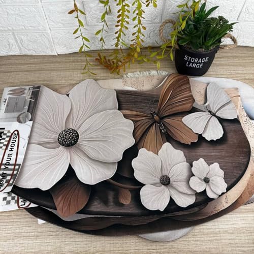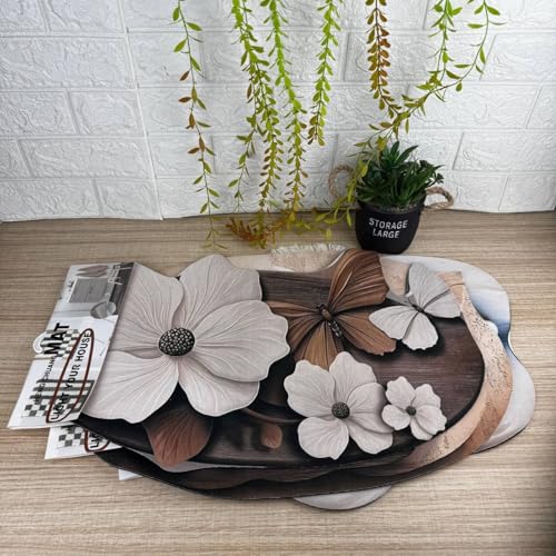 Generic - جيني سجادة ارضية مزخرفة بالزهور، لون بني وبيج، مقاس 38 × 58 سم، خامة ناعمة ومريحة، تصميم انيق للمدخل والمطبخ والحمام