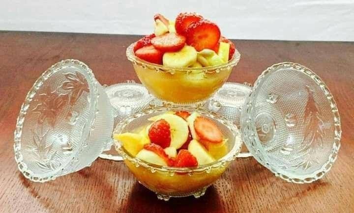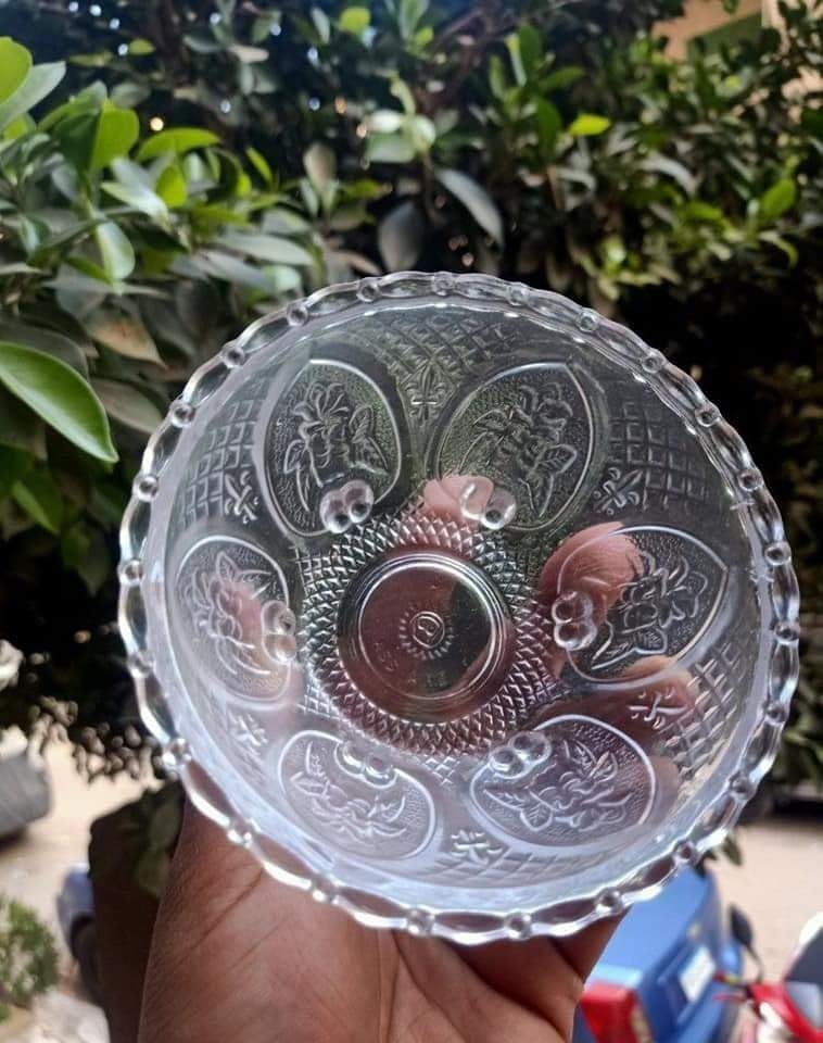 - التصميم: أطباق عميقة زجاجية أنيقة للجلويات مع نقش زهور معقدة، مثالية لتقديم الحلويات التقليدية والعصرية.