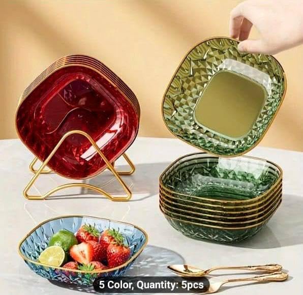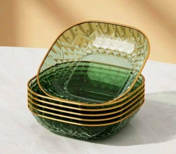 - تصميم أنيق: أطباق حلوى عميقة زجاجية خضراء جميلة تتميز بنقشة ماسية معقدة وحواف ذهبية فاخرة لتناول الطعام والاستمتاع.
