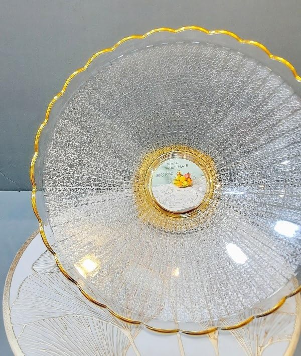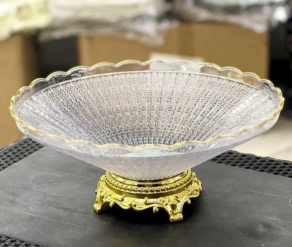 Generic - بولة للفاكهة من الزجاج بقاعدة ذهبية وحافة صدفية للديكور، قطر 36 سم × ارتفاع 15 سم، A2