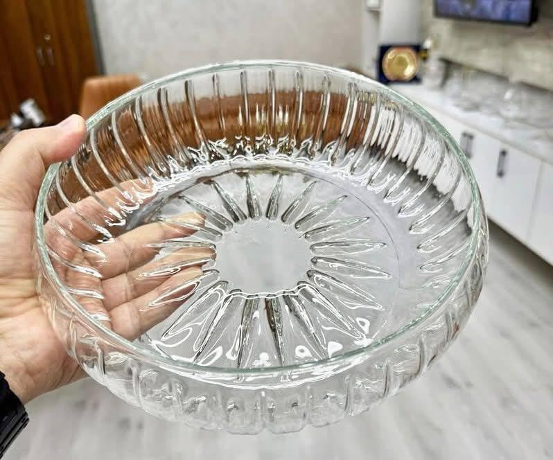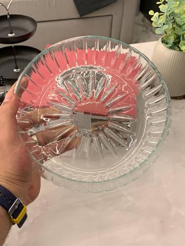 - التصميم: بولة تقديم زجاجية أنيقة بنقشة أشعة الشمس مع حواف نصف قطرية تخلق تأثيرًا بلوريًا مذهلاً مثاليًا للمناسبة الرسمية والاستخدام اليومي.