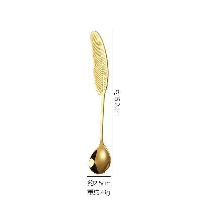 - تصميم فاخر: معالق أنيقة على شكل ريشة ذهبية مصنوعة من الفولاذ المقاوم للصدأ عالي الجودة، مما يضيف لمسة من الفخامة إلى تجربة تناول الطعام الخاصة بك