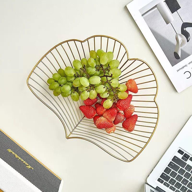 Generic - بولة فاكهة مزخرفة بتصميم أوراق شجر ذهبية بتصميم سلك معدني عصري، قطعة مركزية لطاولة الطعام