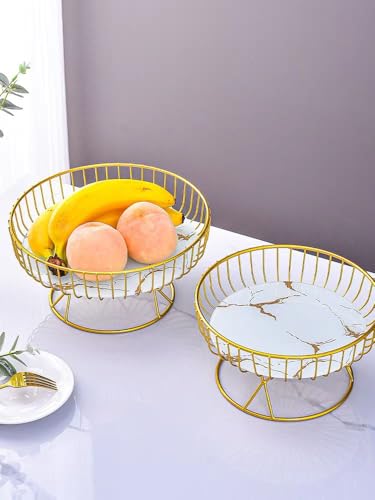Generic - جيني مجموعة سلال فاكهة معدنية ذهبية مزخرفة بنمط رخامي، حامل تخزين دائري من طبقتين، لون ابيض مقاس 23