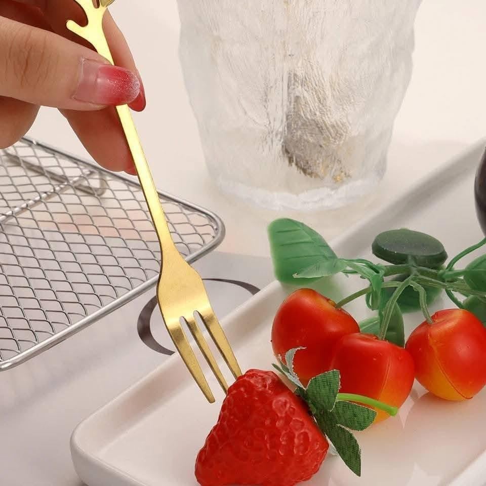 - محتويات الطقم: تحتوي العبوة على 6 شوك تزيينية متطابقة لتناول الحلويات، هذه الشوك مثالية للاستخدام عند تقديم الحلويات أو الفواكه، أو عند إرفاقها في جلسات شرب القهوة أو الشاي.