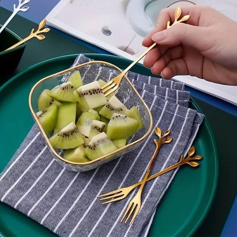 - تصميم فاخر: شوك انسيابية لتناول الحلويات مصنوعة من الفولاذ المقاوم للصدأ المطلي بالذهب، شوك تتميز بنقشات أوراق شجر رقيقة مثالية لإضافة لمسات من الرقي إلى تجربة تناول الطعام الخاصة بك.