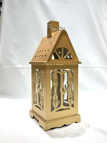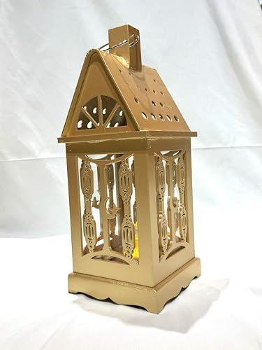 Generic - فانوس مزخرف على شكل منزل، 35 سم، إطار خشبي ذهبي، حامل شموع