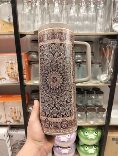 Generic - ترمس معزول ومزخرف بجدار مزدوج للقهوة والشاي بنمط زهور، ابيض واسود، سعة 1 لتر، لتخزين المشروبات الساخنة والباردة.