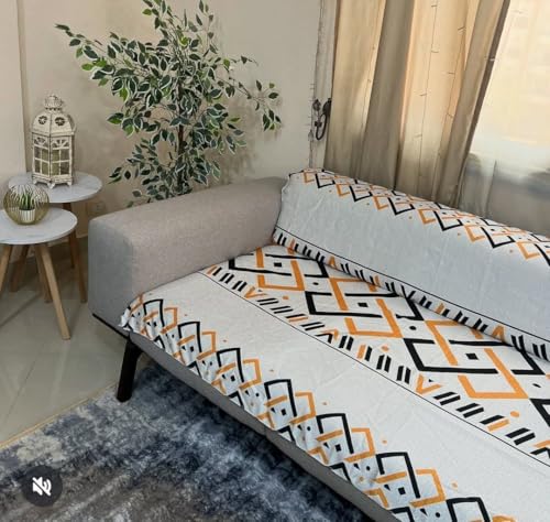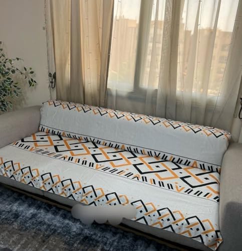 Generic - جيني وسادة مقعد كفر كنبة للديكور، 200 سم × 140 سم، نمط هندسي، ابيض