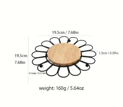 Generic - قاعدة أكواب مزخرفة من المعدن والخشب مقاومة للحرارة بتصميم زهرة سوداء - مقاس 20 سم