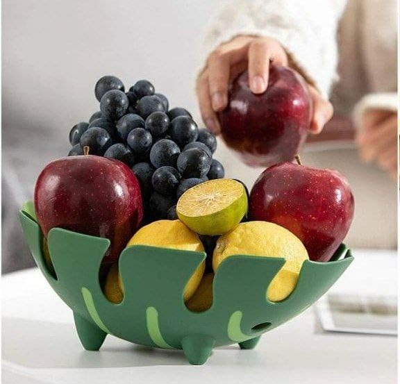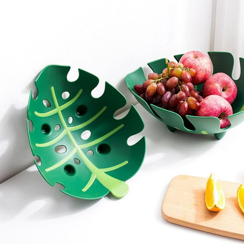 - إلهام التصميم: وعاء فاكهة أنيق على شكل ورقة شجر مونستيرا مع جمالية استوائية حديثة، يتميز بلون أخضر مذهل ونمط قطع فني