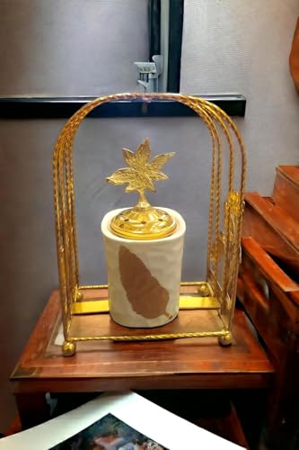 - تصميم أنيق: مبخرة بورسلين تتميز بنمط أوراق ذهبية راقية وحامل ذهبي مزخرف بتصميم مقوس
