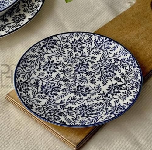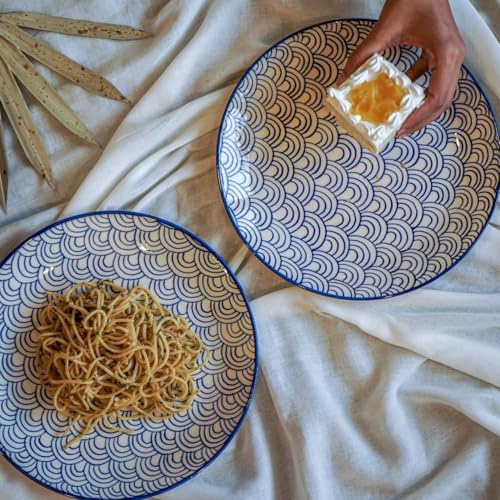 Generic - جيني طبق تقديم بورسلين مزخرف بنمط مموج ازرق دائري، مقاس كبير 23 سم للحلويات وتناول الطعام الانيق. اس ام كيه