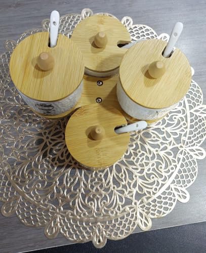 - محتويات المجموعة: مجموعة كاملة من 4 حاويات بورسلين متطابقة، كل منها مع غطاء أنيق من الخيزران للتخزين والحفظ الآمن.