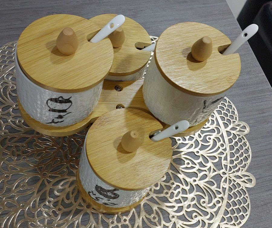 - سعة تخزينية متعددة الاستخدامات: مثالية لتخزين السكر أو الشاي أو القهوة أو التوابل أو المكونات الجافة الأخرى مع الحفاظ على مساحة مطبخ منظمة وجمالية.