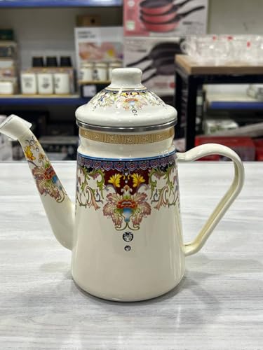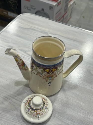 Generic - جيني غلاية شاي بورسلين مزخرفة، 1.5 لتر، نمط زهور، ستيل مقاوم للحرارة، ابيض