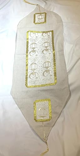 LC - مفرش طاولة رمضان للديكور، تصميم قمر وكتب من الرقائق الذهبية، قماش كتان