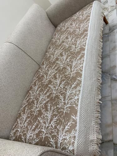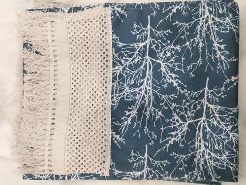 Generic - غطاء أريكة مزخرف مع نمط أغصان، شراشيب مكرمية تتضمن غطاءين كبيرين و6 مفارش، مزيج من القطن والكتان (جينزاري)، لون أزرق مخضر مع نمط أغصان بيضاء، 8 قطع