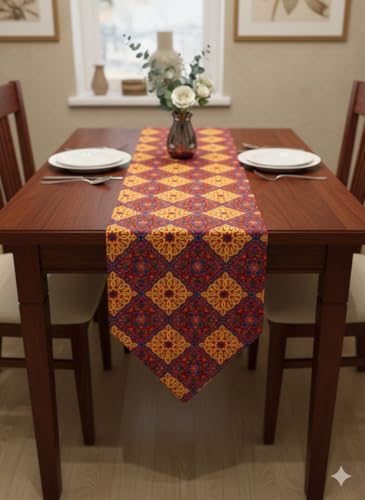 Generic - جيني مفرش طاولة مزخرف بتصميم خيمة رمضان، نمط هندسي متعدد الالوان، 125 سم × 45 سم، لطاولة الطعام، طاولة الزينة، حامل التلفاز