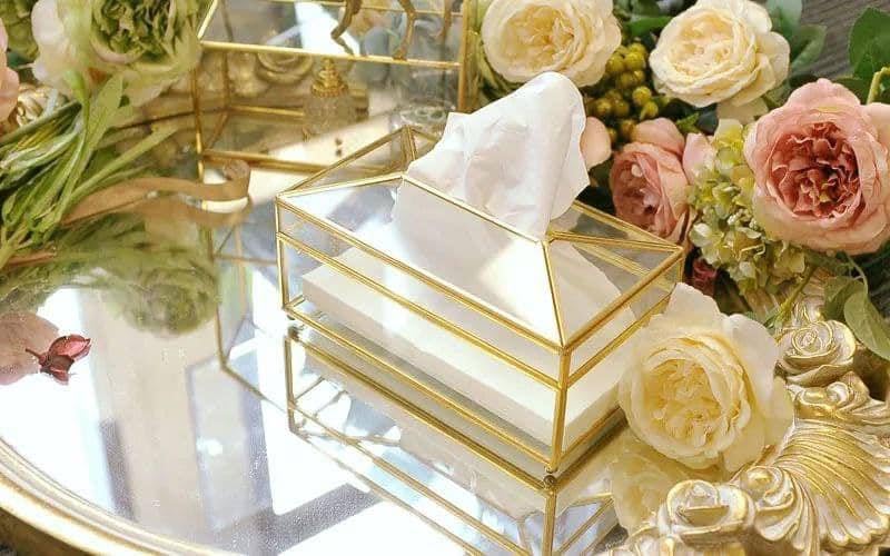 - غطاء مفصلات: يتميز بغطاء علوي زجاجي مفصلي مريح يفتح بسهولة لإعادة تعبئة المناديل بسرعة ويحافظ على نظافة المناديل وحمايتها من الغبار