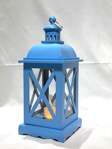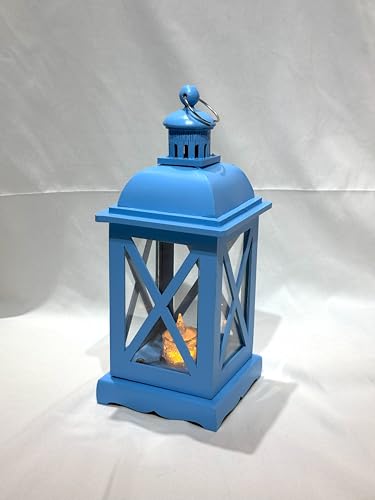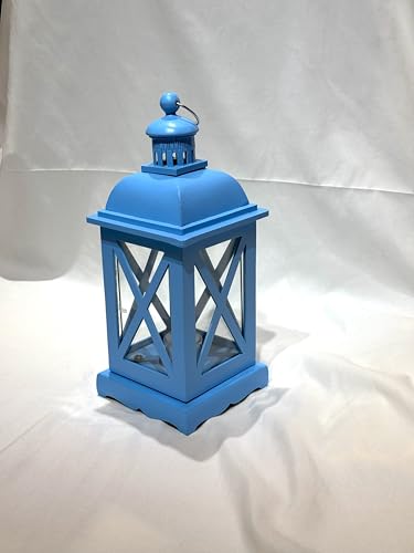 LC - فانوس خشبي للديكور بتصميم على شكل حرف X مع حامل شموع داخلي، 35 سم، أزرق