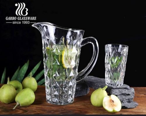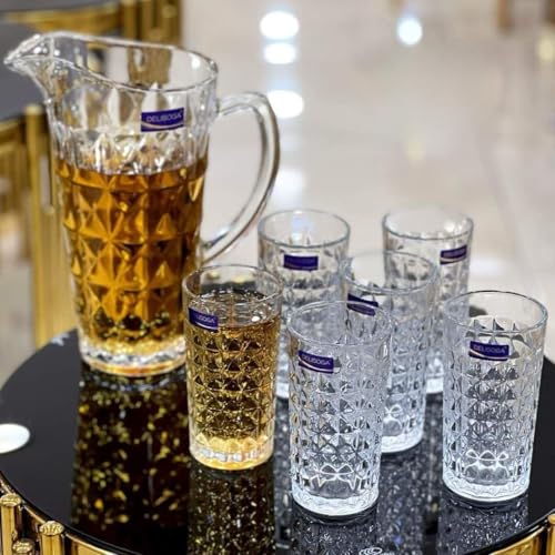 - مجموعة كاملة: يتضمن شفشق تقديم كبير و6 أكواب شرب متطابقة، جميعها مصنوعة من زجاج كريستالي عالي الجودة.