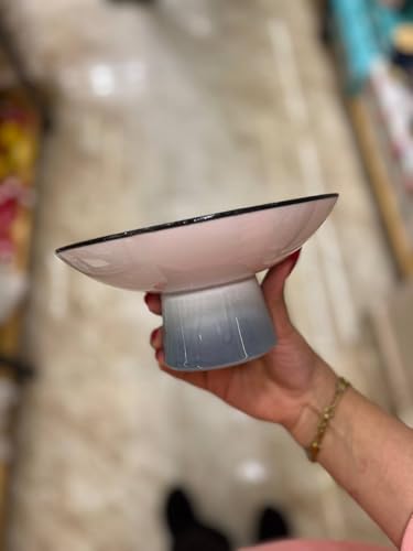 Generic - طبق تقديم حلويات وردي وأبيض مع حافة سوداء مزود بقاعدة للاستخدام كحامل كيك أنيق