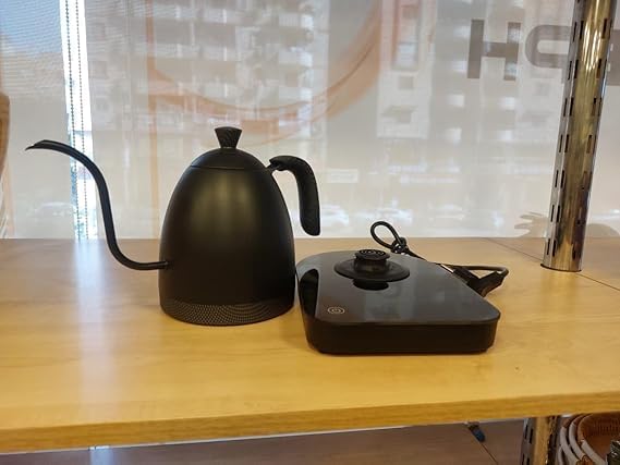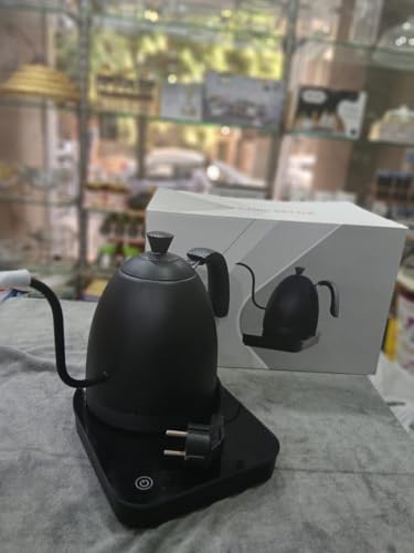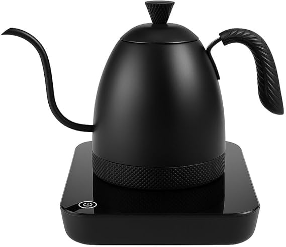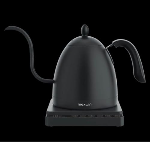 Generic - جيني غلاية قهوة رقمية بتصميم عنق الاوزة الكهربائية مع قاعدة للتحكم في درجة الحرارة، اسود غير لامع، شاشة تعمل باللمس، وظيفة الحفاظ على الدفء.
