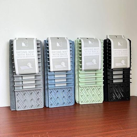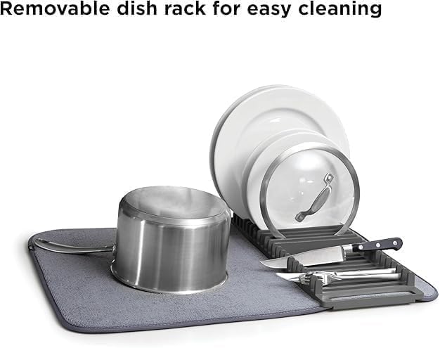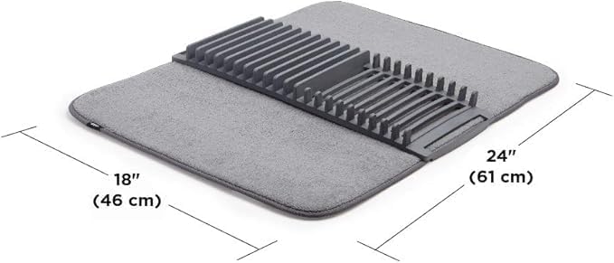 Generic - بساط تجفيف الأطباق مع رف من المايكروفايبر، حامل أطباق قابل للإزالة، متوفر بلون رمادي وأزرق وأخضر مينت وأسود، مقاس 61 × 45 سم