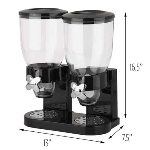Generic - موزع حبوب مزدوج بمقبض دوار بوعاء شفاف، قسمين لتخزين الأطعمة الجافة باللون الأسود