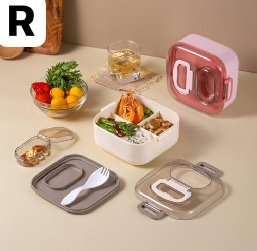 Generic - جيني لانش بوكس مزدوج الطبقات، قاعدة من قسمين، غطاء شفاف، رمادي روم