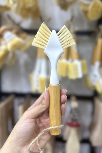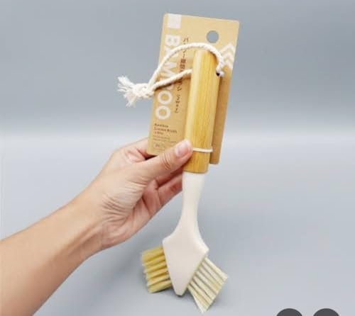 Generic - جيني فرشاة تنظيف الاطباق مزدوجة الجوانب بمقبض خشبي، اداة تنظيف المطبخ متعددة الاغراض للاطباق والاواني والمقالي والموقد
