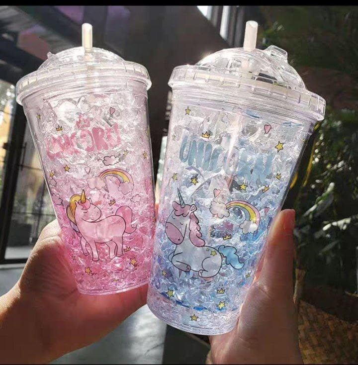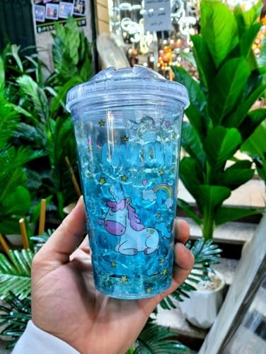 - مزايا التصميم: كوب أكريليك مزدوج التصميم بنمط يونيكورن ونجمة رائع، مثالي للمشروبات الباردة مع غطاء آمن وحامل شفاطة مدمج.