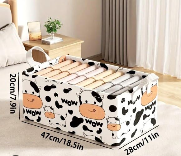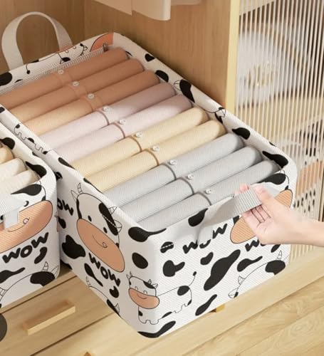 - سعة تخزينية متعددة الاستخدامات: منظم ملابس قابل للطي مثالي للأدراج ودواليب الملابس وأرفف الكتب، يتميز بتصميم نقشة طباعة بقرة أنيقة.