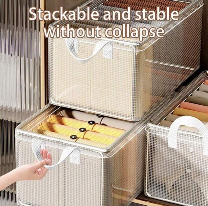 - سعة كبيرة: يبلغ مقاسها 47 × 30 × 19 سم (الارتفاع)، مما يوفر مساحة واسعة لتخزين الملابس المطوية والبياضات والإكسسوارات وغيرها من أساسيات خزانة الملابس