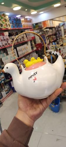 - التصميم: براد شاي ساحر على شكل بطة باللونين الكريمي والوردي مع بطة صغيرة مزخرفة على الغطاء، مثالي لإضافة لمسة مختلفة إلى وقت الشاي الخاص بك