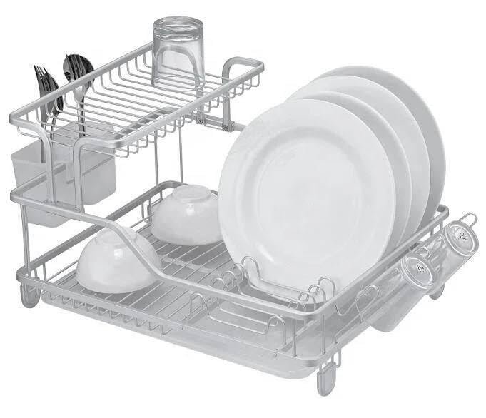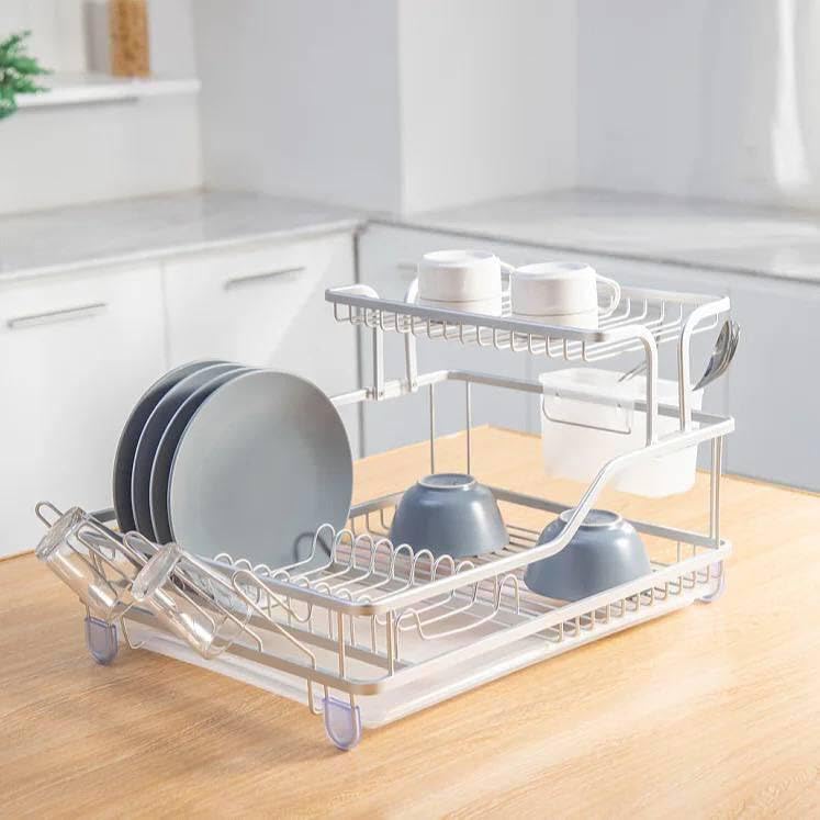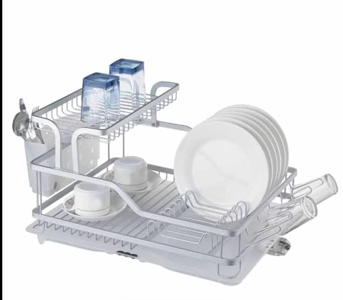Generic - جيني رف اطباق متين من الالومنيوم، مكون من طبقتين، مقاوم للصدا، لمسة نهائية فضية، خفيف الوزن، تصميم عصري للمطبخ