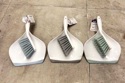 Generic - جيني مجموعة جاروف وفرشاة مع حافة مطاطية، مقبض مريح، بلاستيك متين، تصميم صغير مع حلقة تعليق، مثالية لتنظيف المنزل والمكتب. (ازرق فاتح)