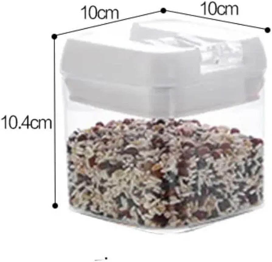 - مجموعة كاملة: طقم حاويات أكريليك مربعة من 4 قطع بأحجام تتراوح من 280 ملليلتر إلى 800 ملليلتر، مثالية لتنظيم مختلف الأطعمة والمكونات الجافة.