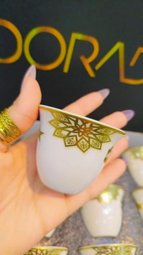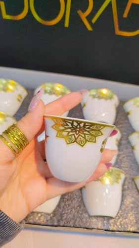 Generic - جيني طقم ادوات مائدة بورسلين عربي من الدورادو، ابيض مع تصميم زهور ذهبية، 12 قطعة، مجموعة رمضان. تي كيه