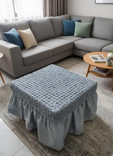 Generic - جيني غطاء عثماني مرن قابل للتمدد مع تنورة مكشكشة، رمادي، مقاس عالمي للبوف او الطاولة