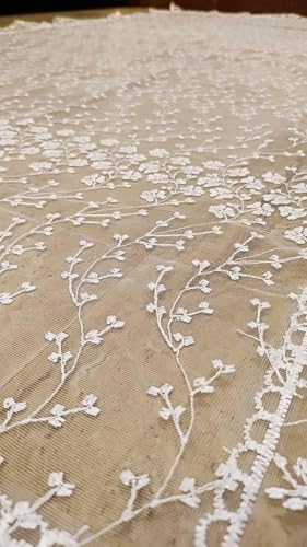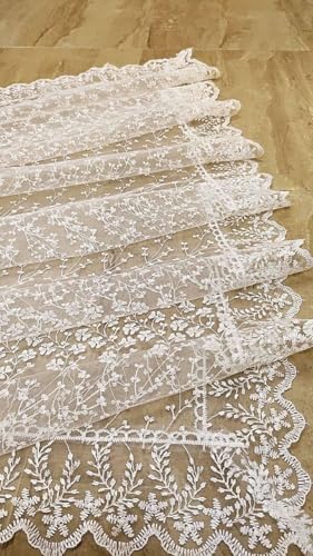 Generic - جيني مفرش طاولة دانتيل مزين بالزهور من اليجانت، ابيض، 130 × 225 سم