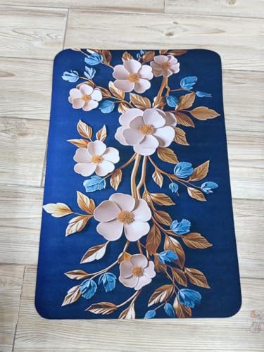 Generic - سجادة أرضية أنيقة مضادة للانزلاق بتصميم زهور (أزرق كحلي وأبيض) سجادة ديكور داخلية، 38 × 58 سم
