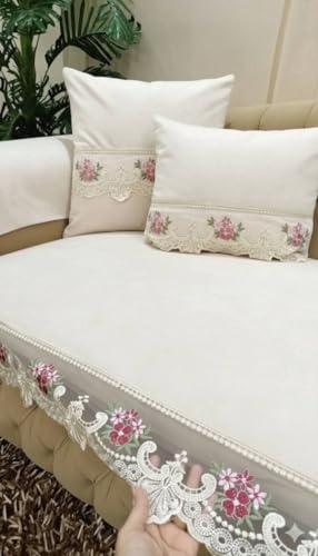 Generic - جيني طقم غرفة المعيشة اليجانت مع حواف دانتيل زهور، 10 قطع تتضمن اريكة كبيرة 180 × 80 سم، اريكة صغيرة 160 × 80 سم، كرسيين، 6 وسائد 50 × 50 سم، (ابيض)