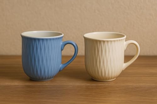 Generic - جيني مج قهوة بورسلين انيق بلون ازرق وابيض، سعة كبيرة 400 مل، تصميم نسيج مضلع، مجموعة من قطعة واحدة .ايه 2