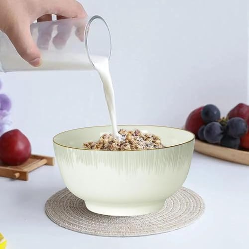 Generic - بولة تقديم أنيقة من البورسلين أمنة للاستخدام في الميكروويف وغسالة الصحون، أبيض مع حواف ذهبية