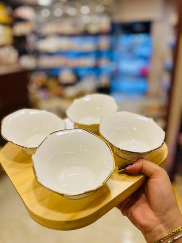 Generic - أطباق تقديم عميقة أنيقة من البورسلين بحواف ذهبية، مجموعة من 4 قطع، أبيض