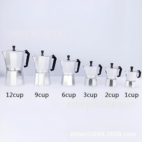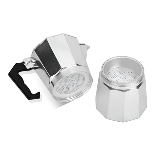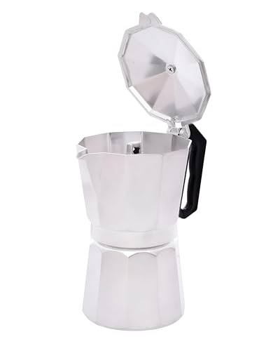 Generic - جيني ماكينة تحضير الاسبريسو من اليجانت باللون الفضي والاسود بستة اكواب - ماكينة تحضير القهوة المعدنية بمقبض مريح - سعة 48 اونصة